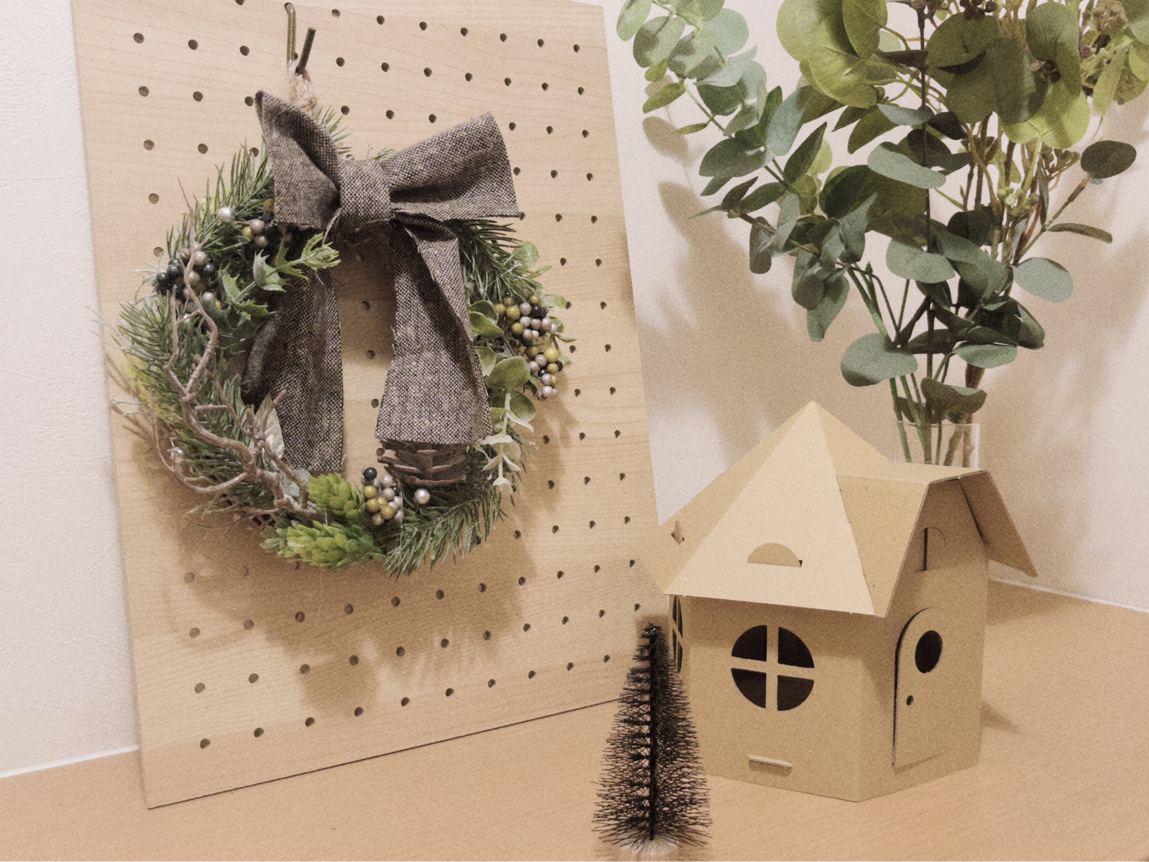 これは去年の 一昨年のは写真が残ってなかった。緑のリースが好きだけどクリスマスリースにしてはあまりにも殺風景すぎた。